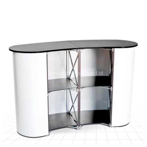 Portable promotion counter. Easy to assemble. Lightweight. Included carrying bag.